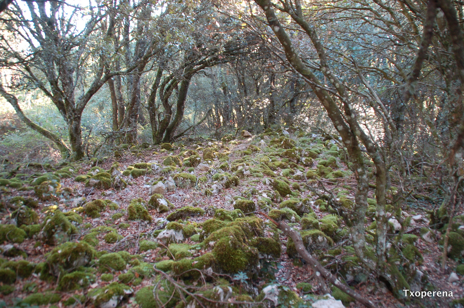 • Coordenadas: ETRS-89, X: 579.545, Y: 4.733.303, Z: 811 • TipologÃa: Lugar de habitación, núcleo de población • Superficie fortificada: 5.000 m2 • PerÃmetro fortificado: 350 m • Eje máximo: 115 m • Eje mÃnimo: 40 m • CronologÃa: Hierro • Emplazamiento: Loma rocosa • Término municipal: Yerri • PolÃgono: 36, parcela rústica 147 (sub-parcela A) • Grupo: Frondosas, cobertura principal: Carrasca (Quercus rotundifolia), recinto 25005 • Entorno: Acantilado rocoso cortado en vertical al Este, Oeste y Sur, Las partes bajas de estos forman abrigos que reúnen inmejorables condiciones, tradicionalmente se han aprovechado para construir rediles y cercados para ganados y presumiblemente utilizados por el hombre como lugar de habitación, la superficie superior es pedregosa y esta cubierta por carrascas. • Conservación: Al no utilizarse agrÃcolamente por la falta de suelo debemos esperar que se encuentre en estado inmejorable, no esta afectado por caminos ni presenta evidencias de alteración de ningún tipo. • Materiales: No se han recogido materiales • Circunstancias del hallazgo: Prospección de Juan Mari MartÃnez Txoperena, en el contexto del poblamiento protohistórico pirenaico a la llegada de los romanos.Localizado: El 20 de septiembre del 2015 • Valoración del yacimiento: Bonito castro donde la mayor parte de la fortificación es natural aprovechando los altos cortados que presenta la roca. El recinto principal se cierra con una doble muralla, la principal de 3,50 m de anchura y varios metros de altura de la que todavÃa se aprecia hasta dos metros en tramos tanto al exterior como al interior, a una anchura aproximada de 6 m existió otra de menos entidad (derruida), con un espacio intermedio a modo de foso, este espacio tiene adosado otro recinto secundario pero también fortificado con otra muralla hoy derruida, los dos ámbitos mantienen una superficie relativamente plana y de inmejorables condiciones para su utilización, denotando que la superficie original extremadamente pedregosa fue utilizada para la construcción de las murallas y las estructuras habitacionales que se intuyen, especialmente adosadas a la muralla. Fuera de las zonas protegidas ocurre todo lo contrario, el suelo esta totalmente recubierto de piedras de todos los tamaños entorpeciendo sobre manera la aproximación al poblado. Creemos que el acceso se realizaba por el norte dirigiendo al cortado Este donde la muralla principal presenta un reforzamiento en anchura y posiblemente en altura por la cantidad de piedra en el lugar y esta además se interrumpe antes de llegar al borde donde se aprecia indicios de paredes a modo de calze de camino.