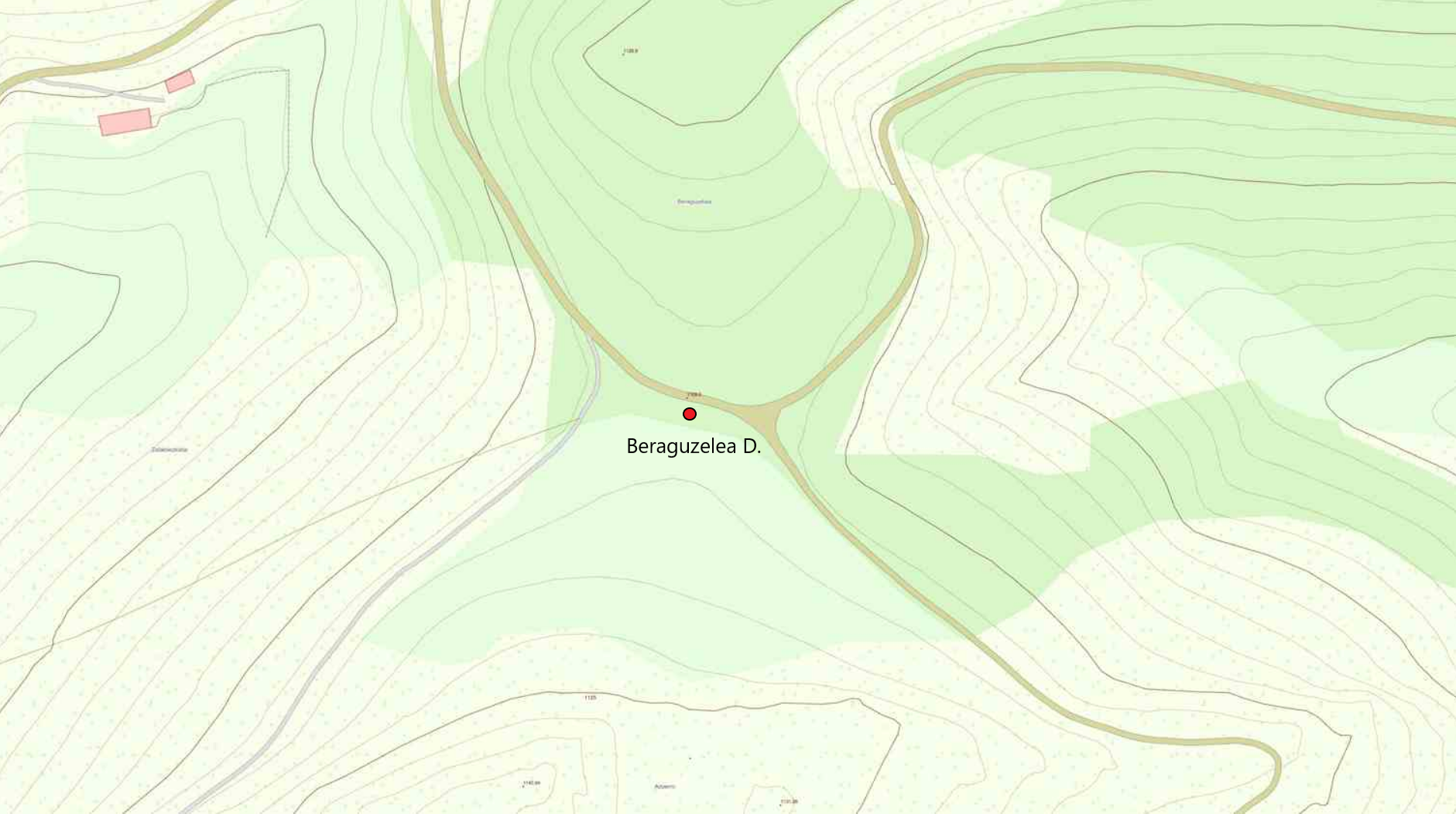 En este collado, debajo de una pequeña hornacina sustentada por un pedestal de piedra y bajo la advocación de San Francisco, subyace casi desapercibido, el túmulo o galgal de un dolmen, práctica habitual para cristianizar tradiciones o devociones antiguas. Este galgal es más evidente ahora que una pista de concentración parcelaria ha cortado la estructura funeraria, de cualquier forma, lo podemos ver a caballo entre dicha pista y un campo de propiedad privada. Para llegar a este lugar tomaremos en el pueblo el camino junto a un abrevadero, en la parte alta, que nos lleva a Beragua. Coordenadas UTM ED-50, X: 646.981, Y: 4.756.526, Z: 1106 Coordenadas UTM ETRS-89, X: 646.878, Y: 4.756.317, Z: 1106 Diámetro: 11 m. y 1,00 m. de altura Datos tomados el día 29-10-05 a las 17,36 horas MTN. 1: 25.000. H. 116-II (52-13) Garralda Término Municipal de Iriberri-Villanueva? de Aezkoa Localizado por: Juan Mari Martínez Txoperena el 10-5-1988 Zona 30, Sierra de Abodi