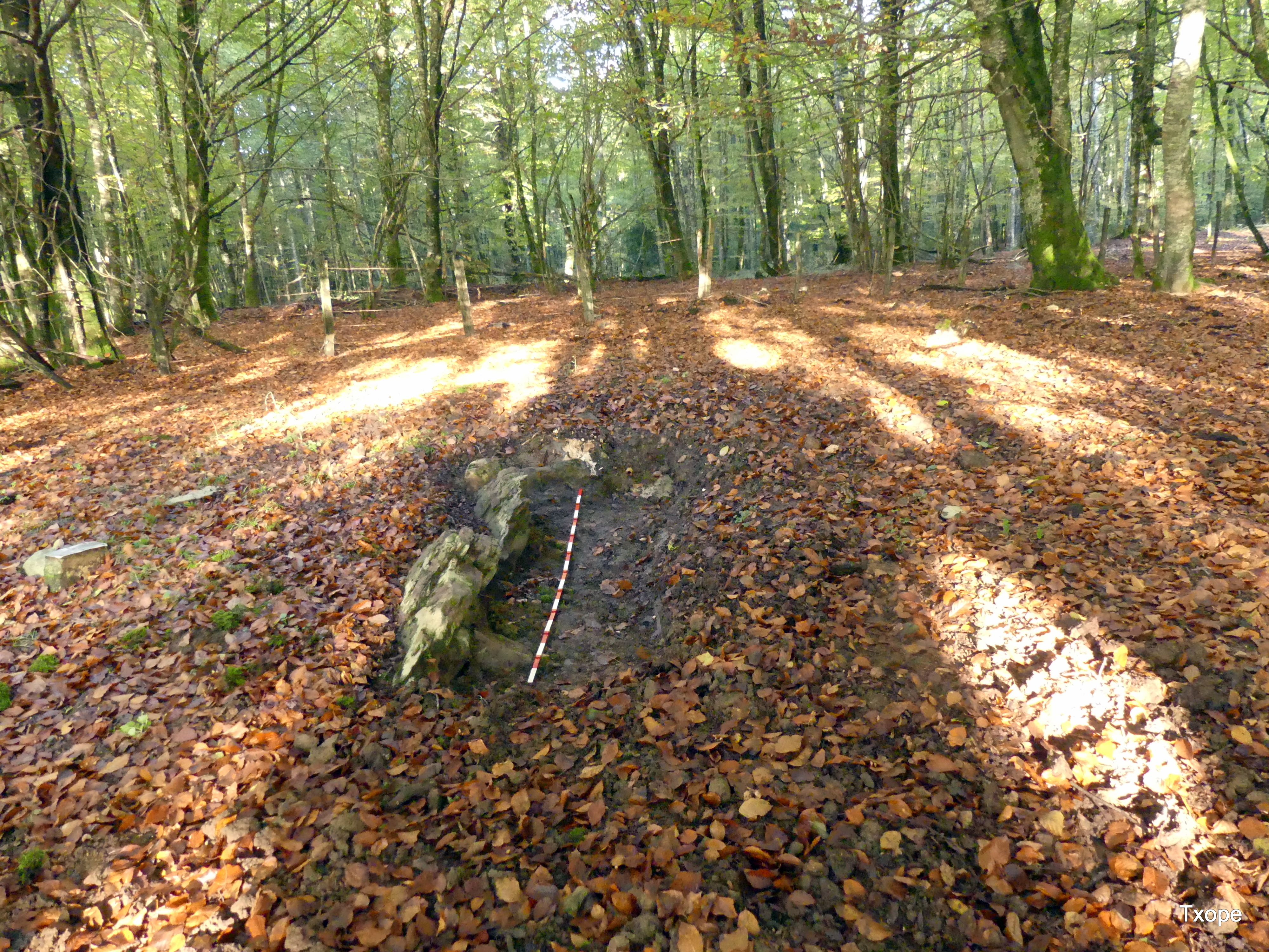 Este es un pequeño dolmen que allá por los primeros años del siglo XX descubriera Silvestre Irigoyen Irisarri, vecino y secretario de Auritzberri-Espinal?, junto a los de Arriurdin, Artzilo D, Urdantxarreta, Urritzmunu, Otegi, Baratzeko Erreka, y Erlezulo (que fue destruido por la estupidez humana, para construir en su lugar el nuevo cementerio del pueblo), dio parte de su existencia a Don José Miguel de BARANDIARAN, que pocos años más tarde los excavó. Le adjudicaron el topónimo como referencia, tiene un galgal de escasa altura donde se puede apreciar claramente las losas laterales izquierdas de la cámara y la cabecera. Durante muchos años ha permanecido cubierto por la maleza pero estos últimos años nos hemos preocupado de su limpieza y eliminación de plantas que lo dañaban. Se localiza en terreno comunal destinado a pastos para el ganado, junto a campos de labor y con fácil acceso. Coordenadas UTM. ED-50, X: 631.723, Y: 4.760.759, Z: 902 Coordenadas UTM. ETRS-89, X: 631.620, Y: 4.760.550, Z: 902 Diámetro: 10,00 m y 0,60 m de altura Datos recogidos el día: 11-8-01 a las 17,35 horas MTN. 1: 25.000. H. 116-I (51-13) Erro Término municipal de: Erroibar-Valle? de Erro Localizado por: Silvestre Irigoyen Irisarri, joven maestro, natural y vecino de Aurizberri que se puso en contacto con J. Miguel de Barandiaran, comunicándole estas localizaciones, en 1924 Zona 26, Auritz-Erro