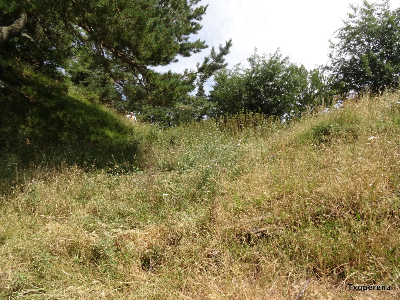 • Coordenadas: ETRS-89, X: 671.203, Y: 4.752.605, Z: 1326 • TipologÃa: Lugar de habitación, núcleo de población • Superficie fortificada: 5.444 m2 • PerÃmetro fortificado: 322 m • Eje máximo: 139 m • Eje mÃnimo: 42 m • CronologÃa: Hierro • Emplazamiento: Cerro • Término municipal: Izaba-Isaba • PolÃgono: 25, parcela rustica 125 (Sub-parcelas A Y B), 132 (sub-parcelas A y B) • Grupo: ConÃferas, cobertura principal pino silvestre (Pinus sylvestris), recinto 11415 • Grupo: Forestal no arbolado, cobertura principal pastizal de alta montaña, . recinto 13837 • Entorno: Terreno mixto de pastizales y bosque, abierto a los vientos dominantes, con amplio dominio visual y en conexión con varios castros; Su altitud le confiere un clima frio y húmedo, visitado asiduamente por Ciervo, JabalÃ, Corzo, Zorro, Tejón, Marta, Fuina y anidan el Ratonero común, Milano Real, Gavilán, Azor, Pito negro, Pito real, Pito picapinos, Cuervo, Corneja, Chova, Arrendajo y una amplia lista de aves menores, es fácil ver Buitres e incluso Quebrantahuesos y Ãguilas reales. • Conservación: En buen estado de conservación no parece haya sido conquistado para la agricultura y la única afección aparente es la causada por las raÃces del arbolado, se mantienen perfectamente definidos los terraplenes que esconden su muralla, también los fosos se encuentran bien definidos. Al recinto primario de reducidas dimensiones le añadieron un segundo recinto mas amplio sin eliminar el foso quedando este como foso intermedio entre los dos recintos igualmente fortificados aunque a diferente nivel. • Materiales: No disponemos de materiales • Circunstancias del hallazgo: Prospección de Juan Mari MartÃnez Txoperena y Rafa Zubiria Mujika, en el contexto del poblamiento protohistórico pirenaico de la calzada romana. Localizado: el 18 de julio del 2015. • Valoración del yacimiento: Recinto fortificado de altura con las caracterÃsticas de refugio de urgencia tanto de personas como de animales, fuertes terraplenes que sin duda esconden murallas de piedra que en puntos concretos se evidencian con su estructura y en general se aprecian ladera abajo derruidas, contiene una caracterÃstica que no es habitual como el foso que separa los dos recintos. Su localización controlando un antiguo camino pecuario hacia los pastizales de altura, es un dato a tener en cuenta, para la comprensión de la existencia de estos recintos fortificados en estas latitudes, teniendo en cuenta el clima de las mismas.