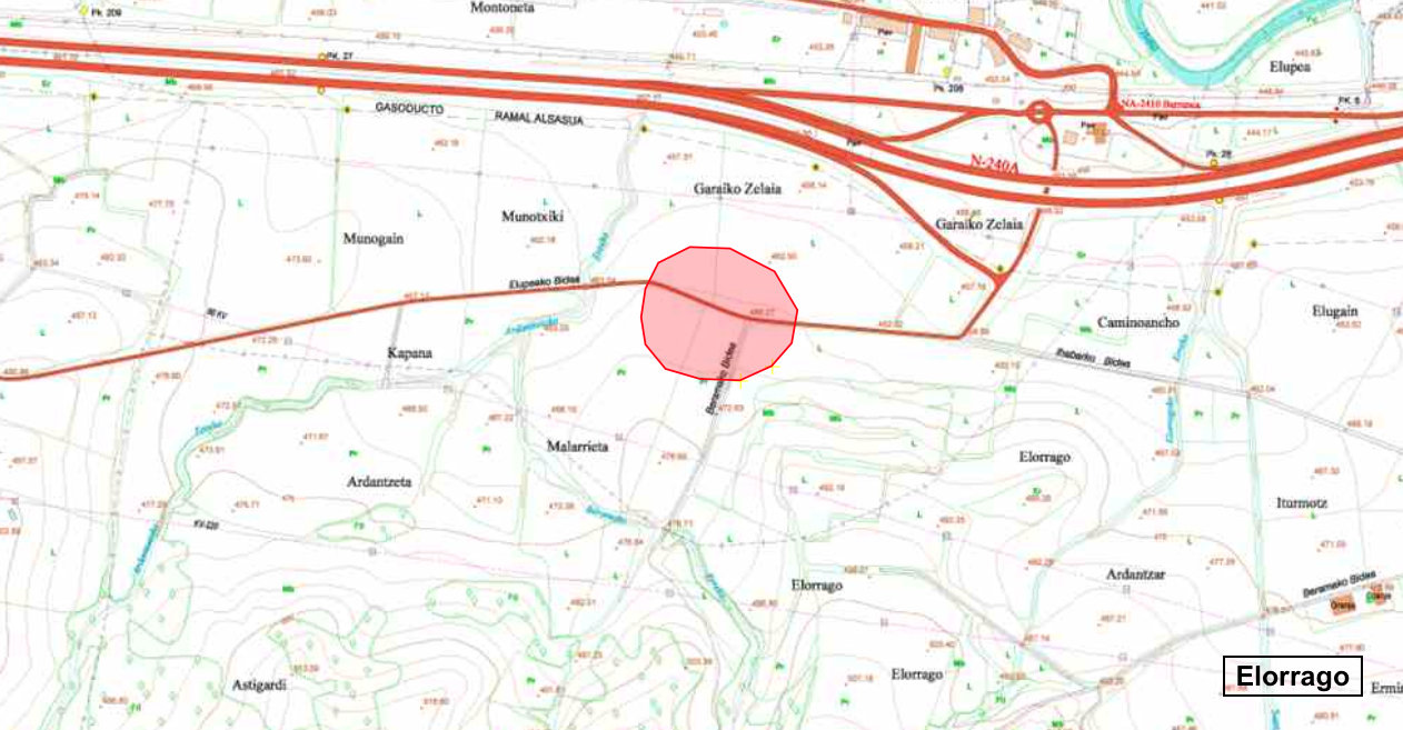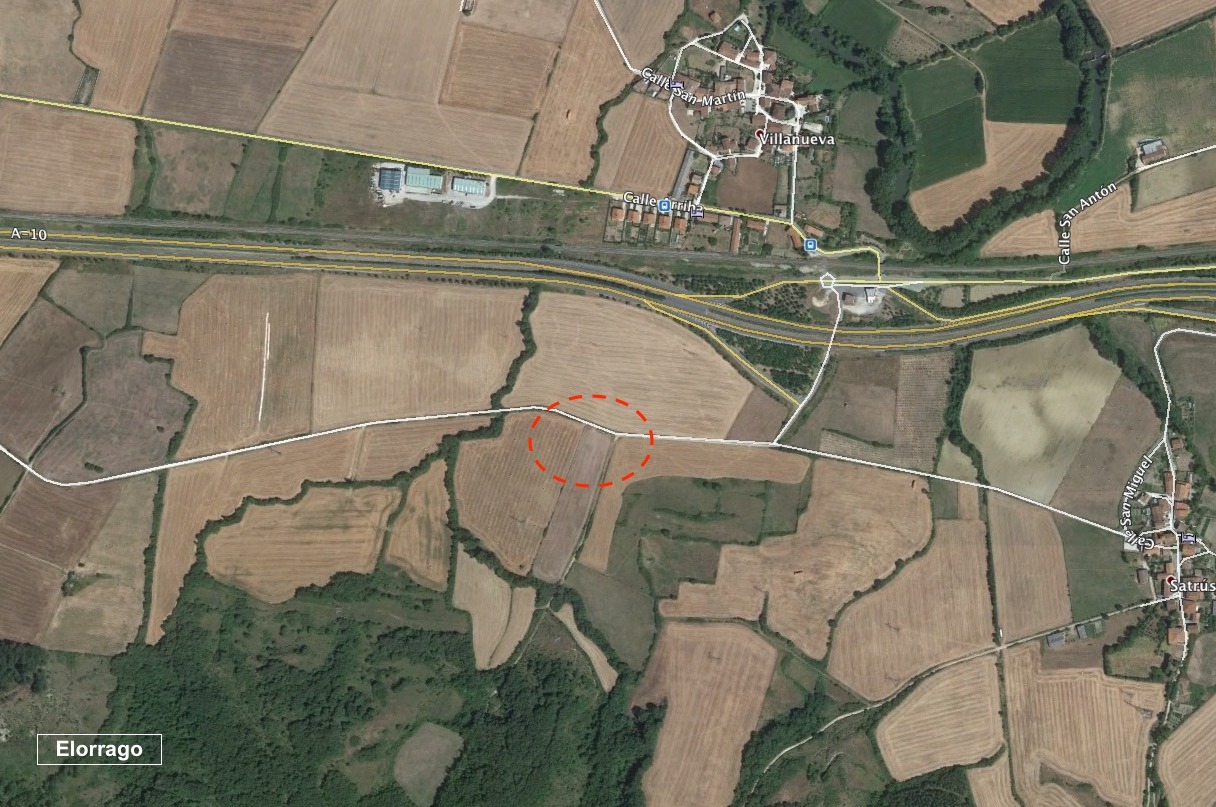 LOCALIZACIÓN Término municipal de Arakil Coordenadas ETRS-89, X: TOPONIMIA Elorrago CONTEXTO PAISAJISTICO Terrenos parcelados de tierras de labor a una distancia aproximada de 400 m al Sur de la población de Hiriberri, en medio de la cubeta sedimentaria entre las sierras de Aralar y Andia, con Ardantzetako erreka al Oeste, a corta distancia. HISTORIOGRAFÃA DESCRIPCIÓN TIPOLOGÃA Pequeño núcleo de población Superficie: 20.000 m2 PerÃmetro: 545 m Eje máximo: 145 m Eje mÃnimo: 145 m CronologÃa: Hierro I Emplazamiento: Valle USO DEL SUELO PolÃgono: 13; Parcelas rústicas: 180 (sub-parcelas A_B), 185, 186, 187, 198 Grupo: Herbáceos de secano; Cobertura principal: Cultivos herbáceos; Recinto 14519 Grupo: Herbáceas de secano; Cobertura principal: Praderas; Recinto 14719 INTERPRETACIÓN Y VALORACIÓN Asentamiento al aire libre en terreno llano y despejado, de suministro de agua asegurado por Ardantzetako erreka. Actualmente no presenta lÃmites a la vista y los materiales aparecen en superficie por ser tierras que se roturan periódicamente, observamos otras evidencias además de restos cerámicos, como son escorias de fundición y materiales cerámicos modernos. Las escorias parecen indicar la existencia de algún horno de fundición próximo. MATERIALES La practica totalidad de la industria se compone de fragmentos cerámicos de distintas épocas - 86 fragmentos de cerámica manufacturada - 2 fragmentos de cerámica manufacturada y peinada - 17 fragmentos de cerámica a torno cocida en horno oxidante - 2 fragmentos de cerámica con gruesos desgrasantes - 2 fragmentos de cerámica vidriada marron - 1 fragmento de cerámica tipo talavera - 2 fragmentos de ladrillo - numero indeterminado de escorias de fundición CONSERVACIÓN Previsiblemente mala por el uso dado al suelo con reiteradas y seculares roturaciones, siembras y caminos agrÃcolas. CIRCUNSTANCIAS DEL HALLAZGO Prospección pedestre de Andoni Peña Lakuntza,Miembro de Ezpilleta Elkartea, en el contexto del poblamiento protohistórico vascón a la llegada de los romanos, el 10 de octubre del 2015 BIBLIOGRAFÃA Los datos han sido facilitados por su descubridor Las personas que necesiten las coordenadas, se facilitaran en < >