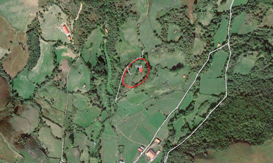• Coordenadas: ETRS-89, X: 612.586, Y: 4.762.206, Z: 705 • TipologÃa: Lugar de habitación, núcleo de población • Superficie fortificada: 11.600 m2 • PerÃmetro fortificado: 440 m • Eje máximo: 170 m • Eje mÃnimo: 110 m • CronologÃa: Hierro • Emplazamiento: Loma • Término municipal: Lantz-Lanz? • PolÃgono: 5, parcelas rústicas: 68, 69, 73 (sub-parcela B), 119 • Grupo: Herbáceas de secano, cobertura principal: Praderas, recinto 9004 • Grupo: Frondosas, cobertura principal: Otras mezclas de frondosas, recinto 9180 • Entorno: Praderas, bordas y setos, es el paisaje predominante en el entorno junto con el paso del viejo camino hacia Baztan, en el lugar donde se inicia el ascenso del puerto. • Conservación: El lugar alterado desde la antigüedad por el discurrir del viejo camino que en algún periodo se introducÃa por el propio recinto, juntamente con su uso agrario pueden haber alterado en parte su fisonomÃa, aunque en general, creemos que este mas afectado en su estructuras defensivas que en la posible estratigrafÃa, que posiblemente se haya conservado, cierto es que el trazado del camino en algún momento se introdujo en el foso oriental, por deterioro del inicial que discurrÃa por el occidental, se aprecia un acceso desde el trazado antiguo hacia el interior del recinto que puede ser el original del castro. Otro detalle que obserbamos es la evidencia de muro en la contraescarpa del foso, como otro elemento importante en su complejo defensivo. • Materiales: No se han recogido. • Circunstancias del hallazgo: Prospección de Zuriñe Iturri Lizoain y Juan Mari MartÃnez Txoperena, en el contexto del poblamiento protohistórico pirenaico a la llegada de los romanos, localizado el 5 de mayo del 2014. • Valoración del yacimiento: Sin duda importante dentro del sistema de control de las rutas protohistóricas en un lugar y ruta fundamental en la comunicación con la vertiente cantábrica y el paso hacia el mar. Que este era un camino importante desde la prehistória, lo prueba, la gran cantidad de dólmenes existentes en la misma ruta y en época histórica, la existencia del monasterio de Belate y la ermita de Santiago, nacidos sin duda, al amparo del propio camino, como estructura hospitalaria para peregrinos y viandantes que circulaban por él.