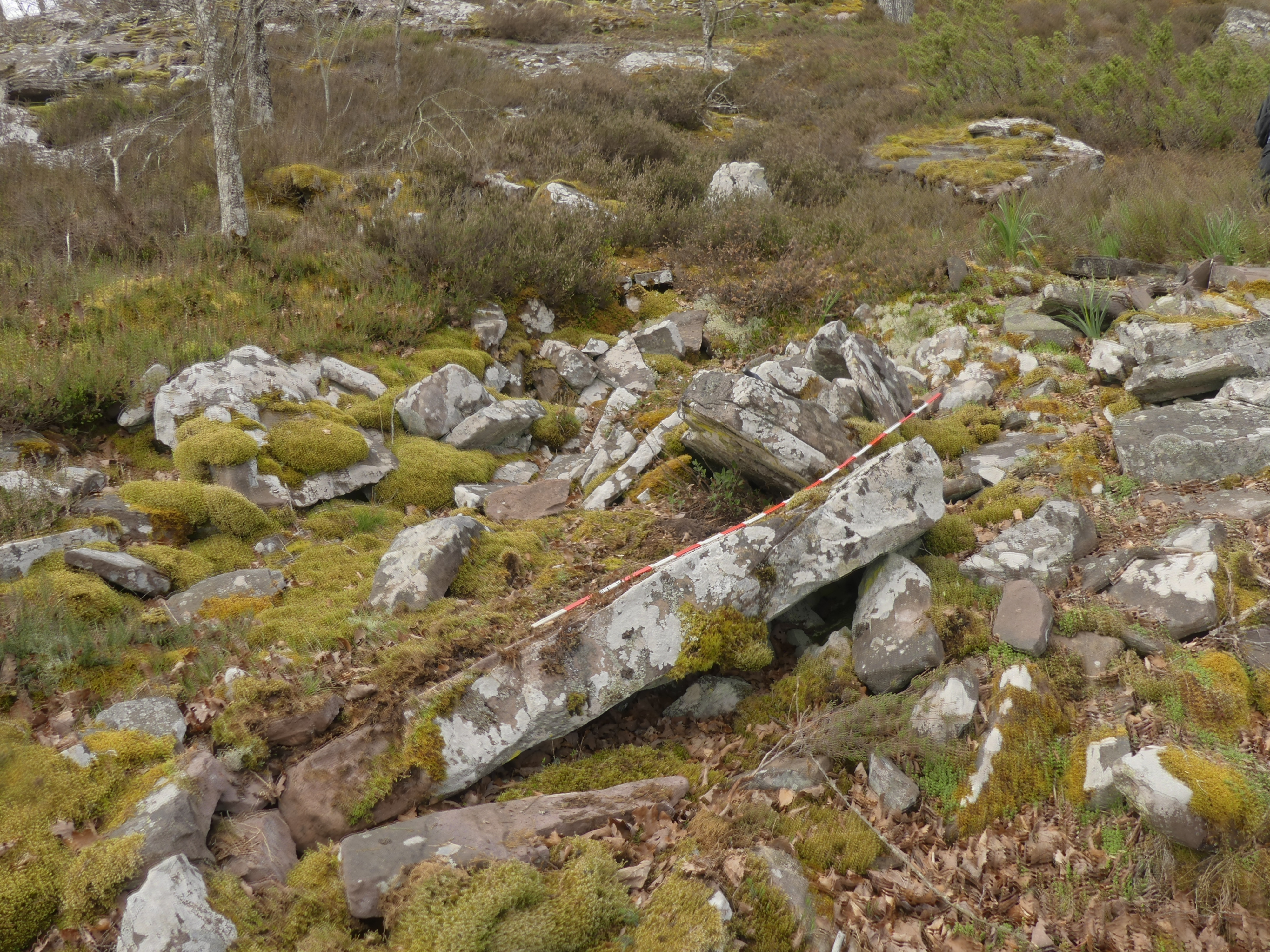 USATEGIETA 4, GARRALDA LOCALIZACIÓN Coordenadas UTM ED-50, X: 639.672. Y: 4.755.955, Z:1007 Coordenadas UTM ETRS-89, X: 639.569, Y: 4.755.746, Z:1007 TOPONIMIA Usategieta CONTEXTO PAISAJÍSTICO Agudo afloramiento de roca arenisca triásica formando una aguda loma orientada al nordeste, cubierta de arbolado de robles y plantas de arándanos, sobre una superficie pedregosa en descenso hacia el río Irati. HISTORIOGRAFÍA Inédita DESCRIPCIÓN USATEGIETA 4, GARRALDA Dolmen de montaña con un galgal colapsado, como consecuencia de este accidente su cámara resulto alterada, aparentemente el empuje del galgal desequilibró la cámara en la dirección de la pendiente, de todas formas como indica su descubridor, se necesitaría una actuación puntual sobre el mismo para confirmarlo por resultar algo dudoso, hay que tener en cuenta la intensa actividad tradicional de canteros artesanos en este paraje, motivo de la destrucción de muchos dólmenes de esta zona, por la centenaria actividad artesana de fabricación de muelas de molino y piedras de afilar, como la que pudimos documentar en su entorno cercano, como se observa en la fotografía. TIPOLOGÍA Dolmen de montaña Eje máximo: 9 m. Altura:1 m. Cronología: Edad del bronce Emplazamiento: Ladera USO DEL SUELO Polígono: 1; Parcela rústica: 64; Subparcela: AH Grupo: Forestal-pastos; Cobertura principal: Hayedo-Robledal?. INTERPRETACIÓN Y VALORACIÓN Típico dolmen de montaña, junto a un viejo camino de ascenso al monte Errazu-Corona?, cerca de un cortado acantilado de impresionantes vistas sobre el río Irati y su valle. Este paraje donde el afloramiento de areniscas triásicas es abundante, ofrece materiales inmejorables para la construcción de estos monumentos. Tradicionalmente ha sido objeto de búsqueda y utilización para la fabricación histórica de muelas de molino y piedras de afilar, causa de la destrucción de muchos dólmenes en la zona. MATERIALES Sin materiales CONSERVACIÓN Posiblemente colapsado, aunque no se observan muestras de expolio o saqueo, posiblemente por su alteración, de todas formas, sin una actuación sobre el terreno, ofrece algunas dudas. CIRCUNSTANCIAS DEL HALLAZGO Prospección pedestre de Iñigo Txintxurreta Diaz, el 31 de marzo del 2025 BIBLIOGRAFÍA http://www.euskal-herria.org/node/31939 http://wiki.txoperena.es/tiki-index.php?page_ref_id=1905&bl=n&saved_msg=y