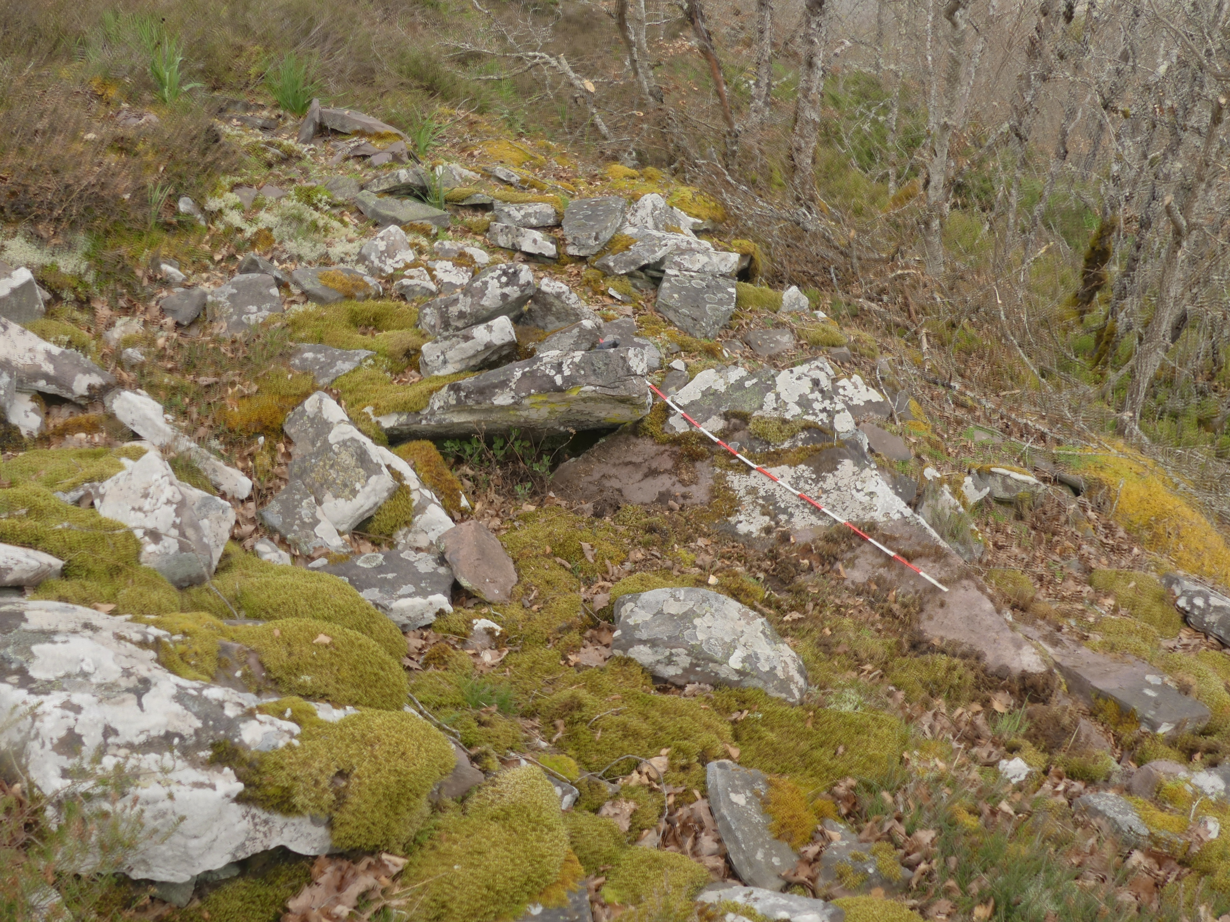 USATEGIETA 4, GARRALDA LOCALIZACIÓN Coordenadas UTM ED-50, X: 639.672. Y: 4.755.955, Z:1007 Coordenadas UTM ETRS-89, X: 639.569, Y: 4.755.746, Z:1007 TOPONIMIA Usategieta CONTEXTO PAISAJÍSTICO Agudo afloramiento de roca arenisca triásica formando una aguda loma orientada al nordeste, cubierta de arbolado de robles y plantas de arándanos, sobre una superficie pedregosa en descenso hacia el río Irati. HISTORIOGRAFÍA Inédita DESCRIPCIÓN USATEGIETA 4, GARRALDA Dolmen de montaña con un galgal colapsado, como consecuencia de este accidente su cámara resulto alterada, aparentemente el empuje del galgal desequilibró la cámara en la dirección de la pendiente, de todas formas como indica su descubridor, se necesitaría una actuación puntual sobre el mismo para confirmarlo por resultar algo dudoso, hay que tener en cuenta la intensa actividad tradicional de canteros artesanos en este paraje, motivo de la destrucción de muchos dólmenes de esta zona, por la centenaria actividad artesana de fabricación de muelas de molino y piedras de afilar, como la que pudimos documentar en su entorno cercano, como se observa en la fotografía. TIPOLOGÍA Dolmen de montaña Eje máximo: 9 m. Altura:1 m. Cronología: Edad del bronce Emplazamiento: Ladera USO DEL SUELO Polígono: 1; Parcela rústica: 64; Subparcela: AH Grupo: Forestal-pastos; Cobertura principal: Hayedo-Robledal?. INTERPRETACIÓN Y VALORACIÓN Típico dolmen de montaña, junto a un viejo camino de ascenso al monte Errazu-Corona?, cerca de un cortado acantilado de impresionantes vistas sobre el río Irati y su valle. Este paraje donde el afloramiento de areniscas triásicas es abundante, ofrece materiales inmejorables para la construcción de estos monumentos. Tradicionalmente ha sido objeto de búsqueda y utilización para la fabricación histórica de muelas de molino y piedras de afilar, causa de la destrucción de muchos dólmenes en la zona. MATERIALES Sin materiales CONSERVACIÓN Posiblemente colapsado, aunque no se observan muestras de expolio o saqueo, posiblemente por su alteración, de todas formas, sin una actuación sobre el terreno, ofrece algunas dudas. CIRCUNSTANCIAS DEL HALLAZGO Prospección pedestre de Iñigo Txintxurreta Diaz, el 31 de marzo del 2025 BIBLIOGRAFÍA http://www.euskal-herria.org/node/31939 http://wiki.txoperena.es/tiki-index.php?page_ref_id=1905&bl=n&saved_msg=y
