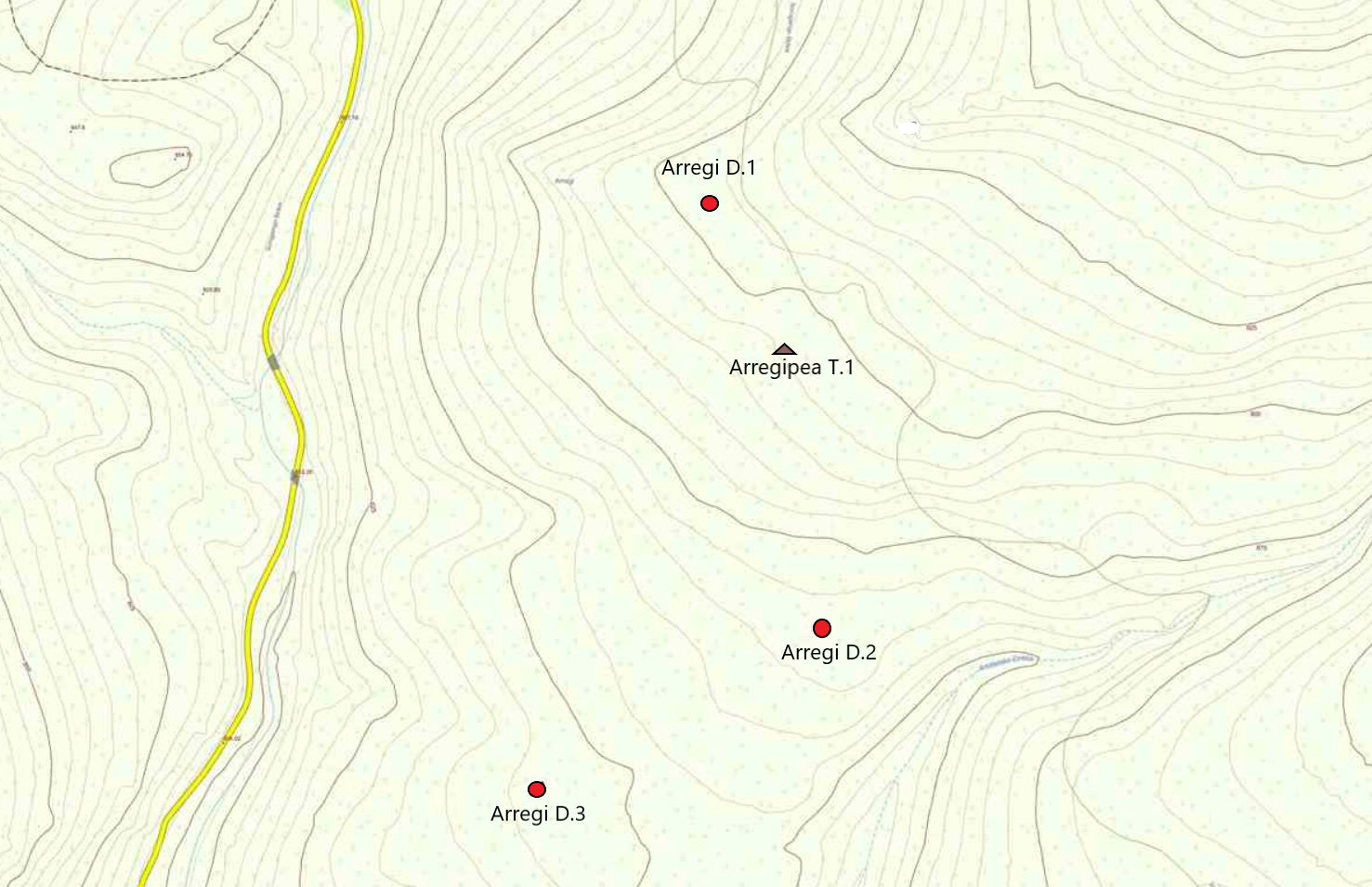 Se trata de un pequeño túmulo construido a partir de cantos rodados de tamaño medio, probablemente transportados desde las regatas de Sorogain y Bagomultxu que discurren al oeste y al este del lugar donde se sitúan todas las manifestaciones megalíticas de esta estación. Este túmulo lo localizamos en el año 2003 cuando acometimos las tareas de limpieza de los dólmenes de Arregi 3-Arrabio y de Arregi 2-Erdikoa encontrados pocos años antes en esta estación. Se localiza al sureste del dolmen de Arregi, a una distancia aproximada de 120 m, en un plano ligeramente inferior. En las proximidades observamos amontonamientos de piedras y aterrazamientos que no sabemos interpretar, pero que tienen que ver sin duda con la utilización del medio, no hay evidencias de profanación, el túmulo es algo atípico y dudoso pero no se nos ocurre otra razón por la que hubieran acarreado tantas piedras desde las regatas hasta este lugar. Coordenadas UTM. ED-50, X: 630 089, Y: 4 762 232, Z: 897 Coordenadas UTM, ETRS-89, X: 629.986, Y: 4.762.023, Z: 897 Diámetro: 8 m y 1 m de altura Datos tomados el día: 25-5-2005 a las 17,10 horas MTN. 1: 25.000. H. 91-III (51-12) Olaberri Término Municipal de: Erroibar-Valle? de Erro Localizado por: Juan Mari Martínez Txoperena, el 28-5-2005 Zona 27, Sorogain-Ibañeta^{DIV} | ||
