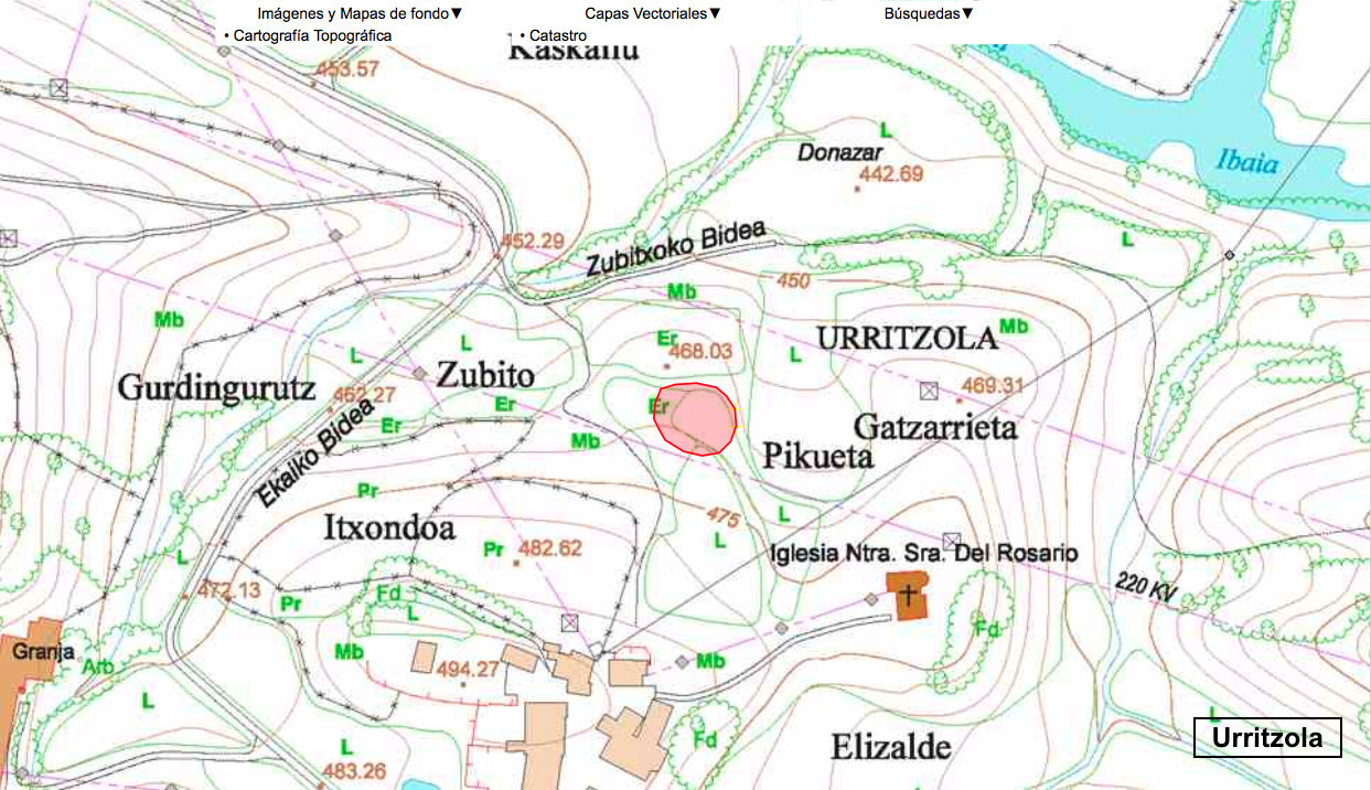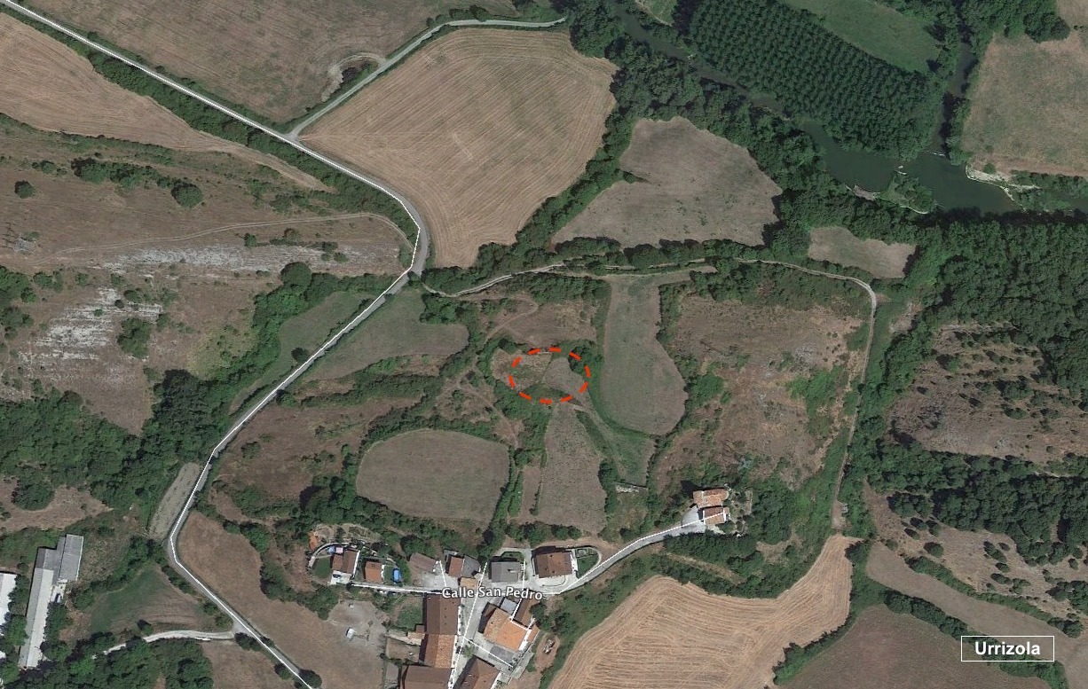 LOCALIZACIÓN Término municipal de Arakil Coordenadas ETRS-89, X: TOPONIMIA Urrizola CONTEXTO PAISAJISTICO Lugar de pequeñas parcelas agrÃcolas cercano a la localidad de Urrizola, aproximadamente 30 m al Norte en dirección del rÃo Arakil. El pueblo se sitúa en un promontorio frente a la confluencia de los rÃos Arakil y Larraun, poco antes de el desfiladero de Oskia, y geoestratégicamente tubo que tener un gran protagonismo en la vigilancia y control del paso. HISTORIOGRAFÃA DESCRIPCIÓN TIPOLOGÃA Superficie:625 m2 PerÃmetro: 90 m m Eje máximo: 30 m Eje mÃnimo: 30 m CronologÃa: Hierro Emplazamiento: Valle USO DEL SUELO PolÃgono: 7; Parcela rústica: 232 Grupo: Forestal no arbolado; Cobertura principal: Pastizal-Matorral?; Recinto 15379 Grupo: Herbáceas de secano; Cobertura principal: Praderas; recinto 15321 INTERPRETACIÓN Y VALORACIÓN Puede representar un pequeño asentamiento cerca del rÃo, aunque nos inclinamos más por interpretarlo como materiales residuales de un establecimiento mayor, que estarÃa situado en el pueblo actual, debajo de cuya iglesia se aprecian unos fuertes bancales, cuyo origen se situarÃa en la Edad del Hierro. MATERIALES - 8 fragmentos de cerámica a mano. - 1 fragmento de molino. CONSERVACIÓN Desconocemos el estado de conservación pues los materiales se recogieron en superficie en una pequeña área y si como pensamos, el verdadero asentamiento estarÃa en el lugar del pueblo actual, es de suponer que haya sido arrasado por las consecutivas construcciones históricas. CIRCUNSTANCIAS DEL HALLAZGO Prospección pedestre de Andoni Peña Lakuntza, miembro de Ezpilleta Elkartea, en el contexto del poblamiento protohistórico vascón a la llegada de los romanos, el 25 de mayo del 2014 BIBLIOGRAFÃA Los datos han sido facilitados por su descubridor Las personas que necesiten las coordenadas, se facilitaran en < > | ||